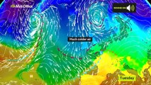 But by Tuesday, cold northerly winds bring a much colder feel to all areas and there will be potentially some snow in places.