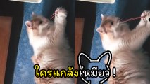ลั่นโลกโซเชียล !! ชาวเน็ตอมยิ้ม นั่งดู.. คลิปเหมียวดีดยางใส่หน้าตัวเอง