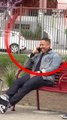 Cet homme assis sur un banc réagit immédiatement en voyant une situation inappropriée près de lui