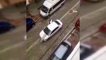 Sinir krizi geçiren kadın otomobilin üzerine çıkarak zıpladı