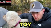 October. Brad Carson with Pete's the pink puppy. She's got her jacket on.