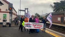 Member of the TTAG campaign group lead a protest march ahead of the public inquiry into raising the toll prices on the Tamar crossings.