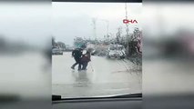 Engelli vatandaşa yağmur altında şefkatli 'Yunus' el verdi