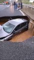 Maltempo a Catanzaro, auto ingoiata da una voragine sulla statale 280