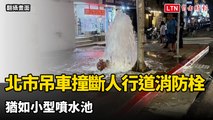 北市吊車撞斷人行道消防栓 猶如小型噴水池