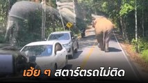 น่ารักเกินต้าน ! ลุงใจดีวิ่งไปโยนกล้วยให้น้องช้างกลางสี่แยก รถติดไฟแดงยังต้องอมยิ้ม