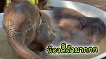 เอ็นดูช้างน้อย ลูกช้างวัยซน เล่นสนุกสุดเหวี่ยงล้มกลิ้งในอ่างน้ำ
