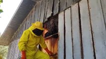 Resgate em altura: Defesa Civil realiza captura de enxame de abelhas