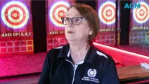Girl is attempting axe throwing and it doesn t go well!