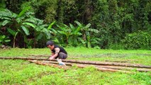 Dwarf family builds wooden house - roof made of palm leaves - intimate meal with neighbor