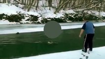 Increíble rescate de este perro en aguas heladas