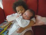 Manon donne le biberon à Lucas