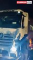 İstanbul Ambarlı Limanı yakınında, İsrail'e ait konteynerleri taşıyan bir kamyonun önünü kesmeye çalışan bir grup, 'İsrail'le ticaret Filistin'e ihanet' sloganları atarak protesto düzenledi. Protesto sırasında güvenlik görevlileri havaya ateş açtı. (İSTANBUL) - İsrail şirketi ZIM'e ait konteynerleri taşıdığı belirtilen bir kamyonun önünü Ambarlı Limanı yakınında kesmeye çalışan bir grup "İsrail'le ticaret Filistin'e ihanet" sloganları atarak protesto etti. Protesto esnasında güvenlik görevlileri havaya ateş açtı. İsrail karşıtı bir grup dün akşam sevkiyat konteynerlerini 'Limanlarda siyonizme geçit yok' diyerek protesto etti. Grup, "İsrail'le ticaret Filistin'e ihanet" sloganı attı. Protesto esnasında güvenlik görevlileri havaya ateş açtı. O anlarda eyleme müdahale eden emniyet güçleri, protestocuların limana girişine ve konteynerlere yaklaşmasına izin vermedi.