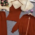 Fashion Women Sets 2021 Autumn Winter Knitted Vest Zipper Cardigans Pants 3pcs Sets Tracksuits Outfits women's clothing