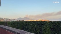 Fiamme sul Vesuvio, colonna di fumo visibile anche da Napoli