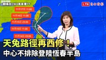天兔路徑再西修!中心不排除登陸恆春半島(翻攝自CWA氣象署YT)