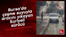 Bursa'da çeşme suyuyla aracını yıkayan Suriyeli sürücü
