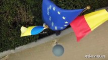 La bandiera ucraina issata davanti al Parlamento europeo