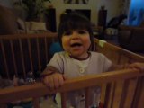 Elya dans son lit fait la fete