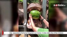 Usa, ippopotamo frantuma l'anguria in un morso: il video dello Zoo di San Antonio