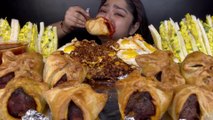 SPICY SCHEZWAN MUTTON CURRY NOODLES AND CHICKEN BURGERS WITH BUTTER CHICKEN | ASMR EATING SHOW