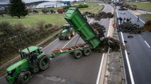 00:12Die demonstrierenden Bauern blockierten unter anderem den Handelshafen von Bassens in der Nähe von Bordeaux, über den Getreide importiert wird mit ihren Traktoren.
