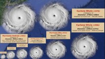 Comparaison de la taille des cyclones tropicaux
