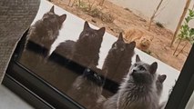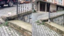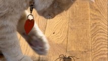 Tiny feathers test gentle fur – the beauty of playful persistence!