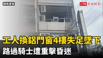 新北工人換鋁門窗4樓失足墜下 路過騎士遭重擊(翻攝畫面)