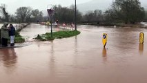 Flooding on the A6025 at Brookfoot near Brighouse because of Storm Bertie
