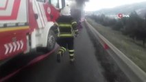 KOCAELİ - Anadolu Otoyolu Kocaeli geçişinde alev alev yanan muz yüklü tırın çekici bölümünden geriye demir yığını kaldı.