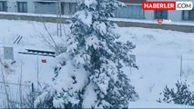 Beyaz örtüyle kaplı ilçedeki binaların çatılarında sarkıtlar oluştu.