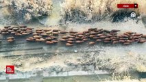 Iğdır çevresindeki otlaklarda morkaraman ırkı damızlık koyun yetiştiriliyor