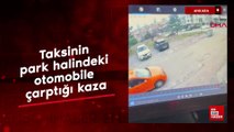 Otomobil park halindeki araca çarptı: O anlar kamerada