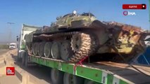 Suriye Milli Ordusu, Özgürlük Şafağı Operasyonu kapsamında Esad rejiminden ele geçirdiği tankları karargahına sevk etmeye devam ediyor. 27 Kasım'dan bu yana süren çatışmalarda çok sayıda silah ve mühimmat ele geçirilirken, tanklar görüntülendi. Suriye Milli Ordusu (SMO), Özgürlük Şafağı Operasyonu kapsamında Esad rejiminden ele geçirdiği tankları karargahına sevk etmeyi sürdürüyor.ESED REJİMİNDEN ÇOK SAYIDA TANK ELE GEÇİRİLDDİSuriye'de muhalif gruplar, 27 Kasım'dan bu yana Esad rejimi güçleriyle ve terör örgütü PKK/YPG ile çatışmalara devam ediyor. Suriye Milli Ordusu (SMO), çatışmalar kapsamında çok sayıda silah, mühimmat ve tank ele geçirdi. SMO askerleri, rejimden ele geçirdikleri tankları karargahına sevk etmeyi sürdürüyor. Öte yandan Halep'in kuzeyinde ise terk edilmiş halde duran tanklar bulunuyor. MUHALİFLER MENBİÇ'E İLERLİYORBaşını SMO'nun çektiği silahlı muhalifler, Münbiç'e doğru yola çıktı.