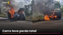 Carro pega fogo em rodovia na zona rural de Macapá