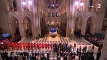 Moment poignant de la cérémonie et standing ovation. 160 sapeurs-pompiers ainsi que des représentants des corps de métiers ayant œuvré à la reconstruction arrivent devant l'autel de la cathédrale sous les applaudissements chaleureux des invités.