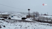 Yüksekova'da göç etmeyen leylekler karlı arazide görüntülendi