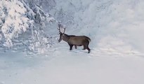 Kastamonu'da karla kaplanan ormandaki karacalar görüntülendi