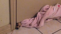 Adorable Puppy Squeezes Under Door