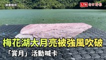 宜蘭梅花湖13公尺大月亮被強風吹破 「賞月」活動喊卡(冬山鄉公所、民眾提供)