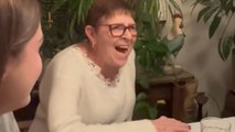 As soon as grandma saw him, her face lit up with pure joy.