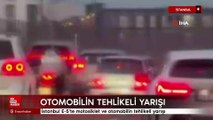 İstanbul E-5'te motosiklet ve otomobilin tehlikeli yarışı