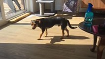 This dog couldn’t wait to get his paws on the fruits in the basket.