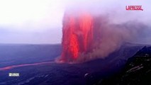 Hawaii, l'impressionante fontana di lava all'interno del vulcano Kilauea