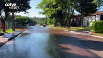 Rompimento de tubulação provoca vazamento de água no bairro Cataratas em Cascavel