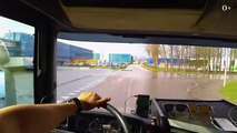 I will show you what the roundabout and side lane look like when driving a truck in Netherlands