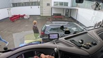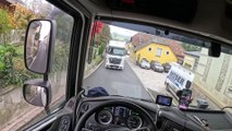 truck driver Got stuck head-to-head with another truck in a narrow street!