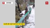 बर्फ से पटा यमुनोत्री पैदल मार्ग, लकड़ी और फट्टों से हटा रहे मजदूर, तैयारियों पर उठे सवाल