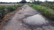 Jalan Berlubang di Perbatasan Desa Mundu